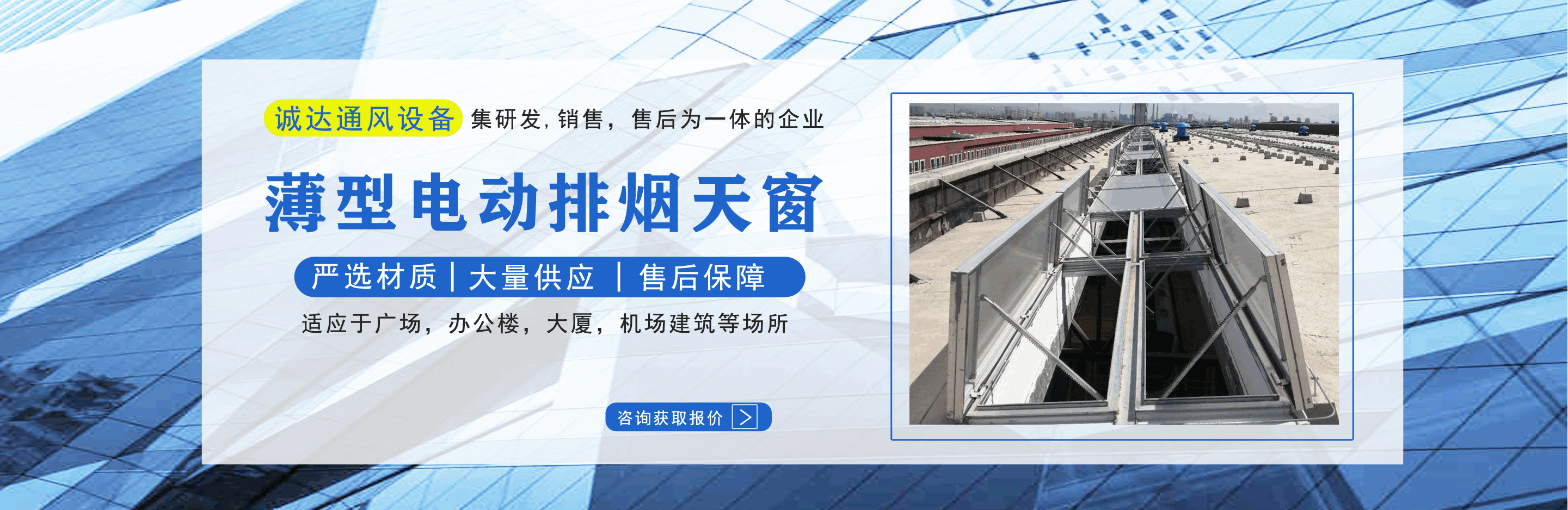山東誠達通風設備有限公司主營排煙天窗,電動排煙天窗,消防天窗,一字型消防電動排煙天窗,薄型電動排煙天窗等產品,質量可靠,歡迎前來咨詢訂購! 公司憑借雄厚的實力,豐富齊全的規格品種,完善的質量保證,合理的價格,優質的服務,不斷地受到新老用戶及業內人士的肯定和信任,我們本著及用戶之所及,想用戶之所想的服務宗旨不斷地拼搏,進取! 公司真誠的歡迎社會各界朋友蒞臨本公司參觀考察,同時也非常感謝所有新老客戶的信賴和支持。...